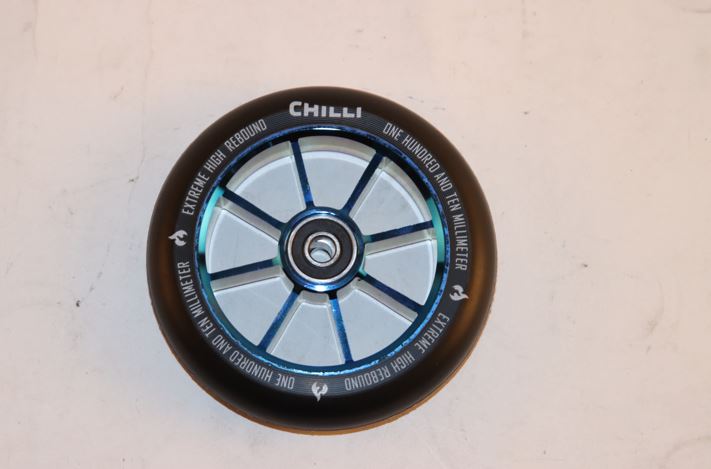 Het Chilli Base stuntstep wiel heeft een diameter van 110mm en een hardheid van 88A. Dit zorgt voor een goede vering en een soepele rol-ervaring. Inclusief 2 lagers.